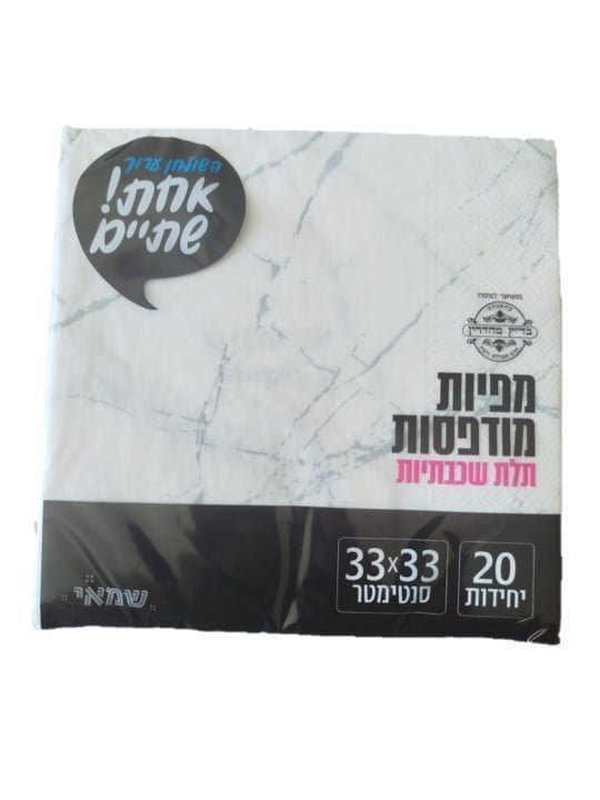 / מפיות מודפסות – שיש לבן שחור 20 יחי'